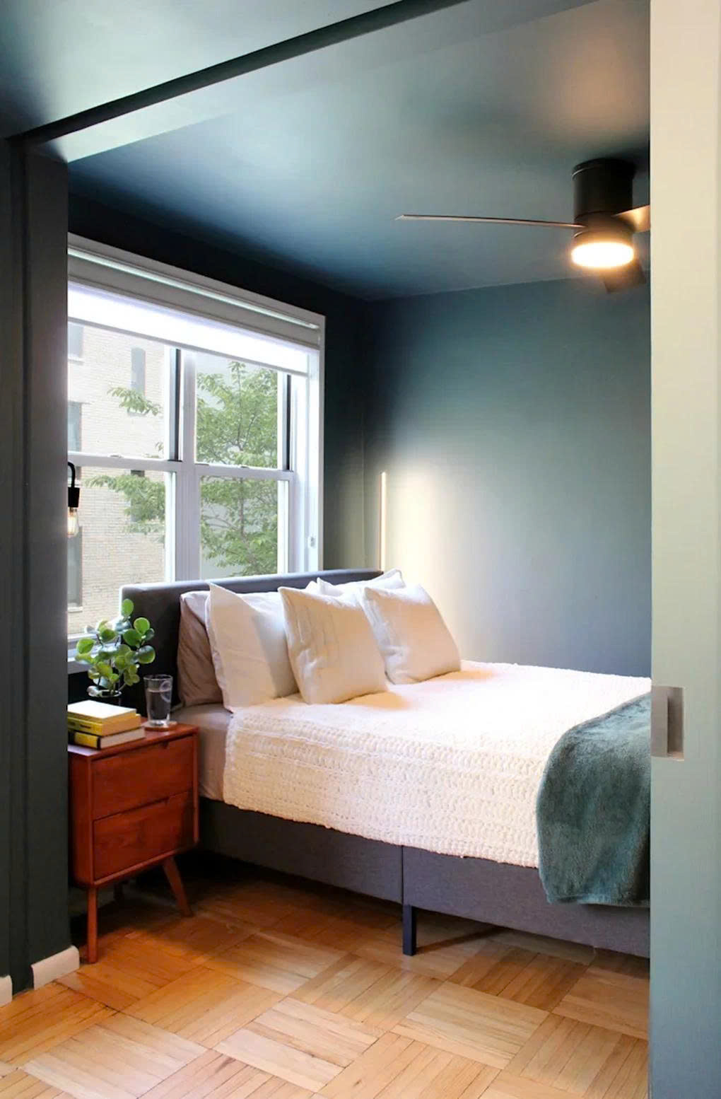 Trong không gian nhỏ, bỏ đầu giường dày cộp có thể giúp bạn tiết kiệm 5–10 cm diện tích quý giá (Ảnh: Minette Hand).