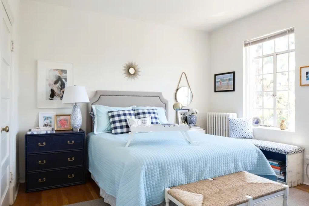 Ai nói hai bên giường phải là một cặp bàn giống hệt nhau? Theo Lisa Simopoulos, người sáng lập Simopoulos Designs, sự không đồng bộ lại tạo nên một nét chấm phá đầy nghệ thuật. Trong một dự án của mình, cô đã kết hợp một chiếc tủ ngăn kéo ở một bên và một chiếc bàn nhỏ ở bên còn lại.