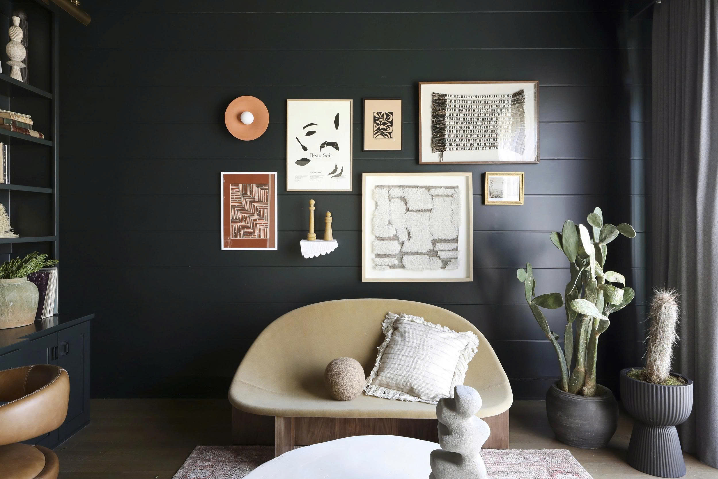 Giải pháp: Nếu bạn yêu thích tông màu tối, trầm, hãy chỉ dùng một bức tường nhấn hoặc chọn bản mờ (matte) của tông tối. Ngoài ra, màu xanh rừng thông, xanh olive đậm hay tím lilac nhạt là lựa chọn thay thế tinh tế, giữ được vẻ ấm áp mà không ngột ngạt.
