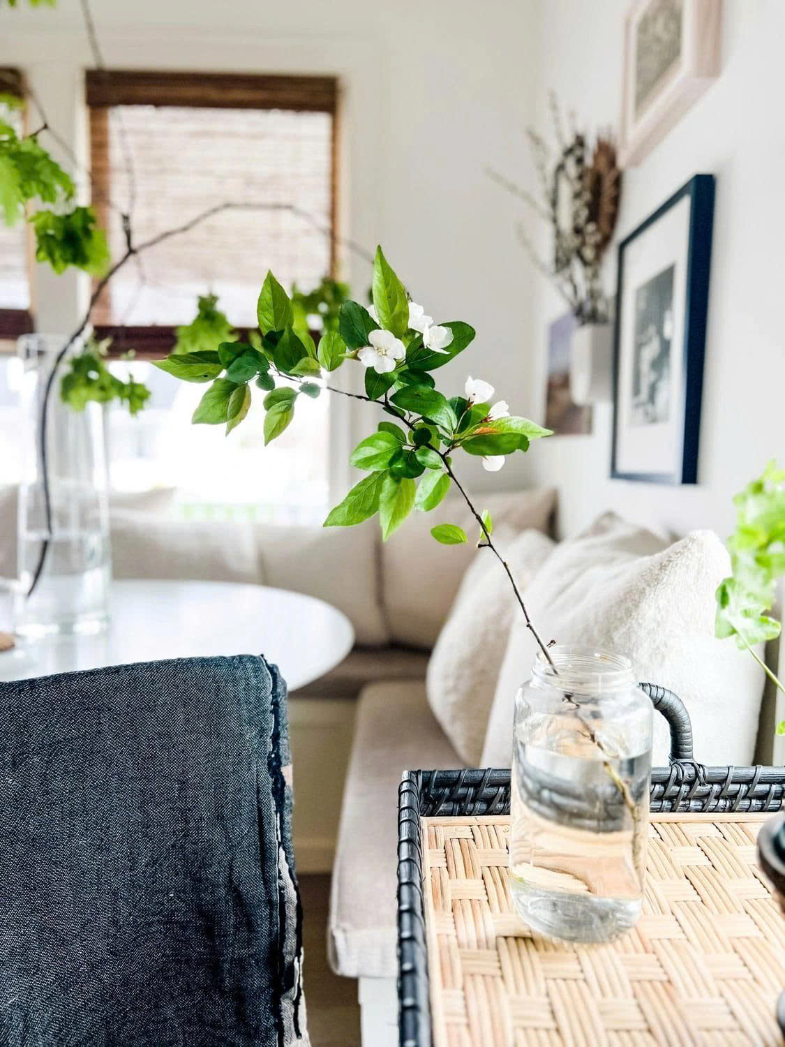 Cây xanh là món đồ trang trí vô giá nhưng lại rẻ tiền nếu bạn biết cách tận dụng. Thay vì chi tiền triệu cho những chậu cây nhập khẩu đắt đỏ, hãy cầm kéo ra vườn hoặc ban công. Những cành cây mảnh khảnh, một vài nhánh lá nhiệt đới như trầu bà, lưỡi hổ hay chuối cảnh khi được cắm vào lọ thủy tinh đơn giản đều có thể tạo nên vẻ đẹp hiện đại, đầy sức sống.