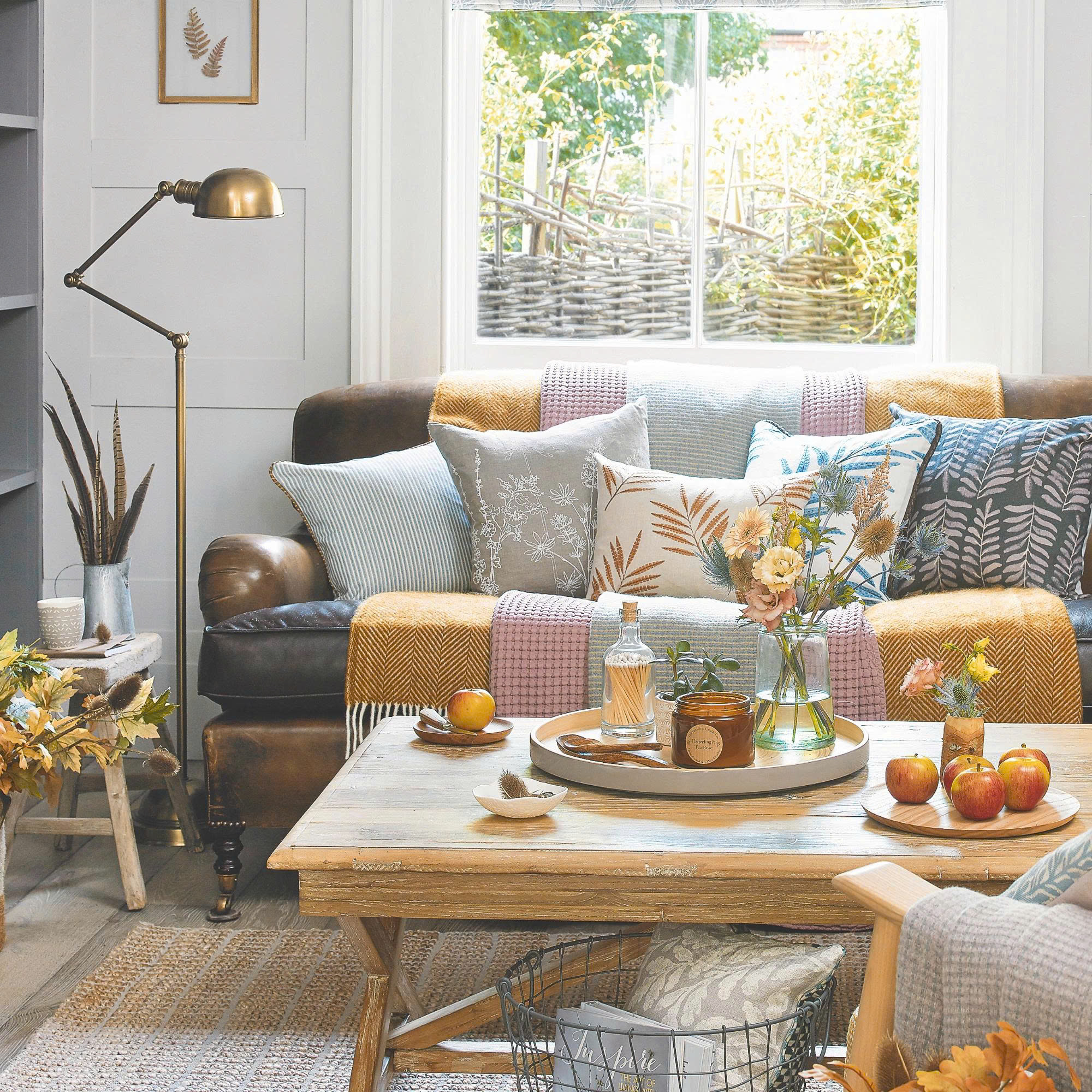 Bạn có thể cất những bộ vỏ gối tông trầm của mùa đông và thay bằng chất liệu linen, cotton với họa tiết hoa lá hoặc màu sắc tươi sáng để đón xuân. Sự thay đổi về kết cấu vải vóc sẽ mang lại sự mềm mại và êm ái cho không gian tiếp khách.