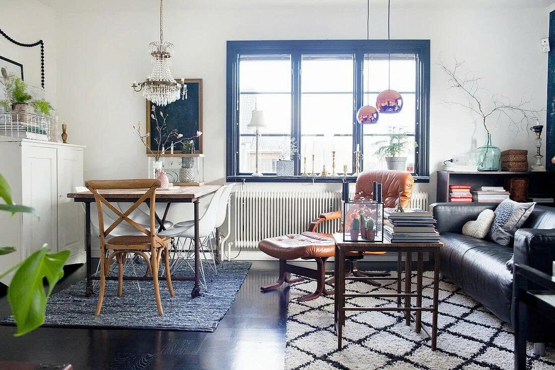 Đây là cách đơn giản nhưng cực kỳ hiệu quả. Hãy sử dụng những tấm thảm khác nhau cho từng khu vực. Một tấm thảm lớn cho phòng khách, một tấm khác cho khu vực bàn ăn.